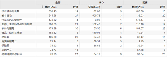 Wind显示,在Wind二级行业分类下,技术硬件与设备、资本货物、汽车与汽车零部件这三大行业是募资规模前三名;后续则还有制药、生物科技与生命科学,软件与服务,食品、饮料与烟草,材料Ⅱ等行业的募资规模超过百亿港元。