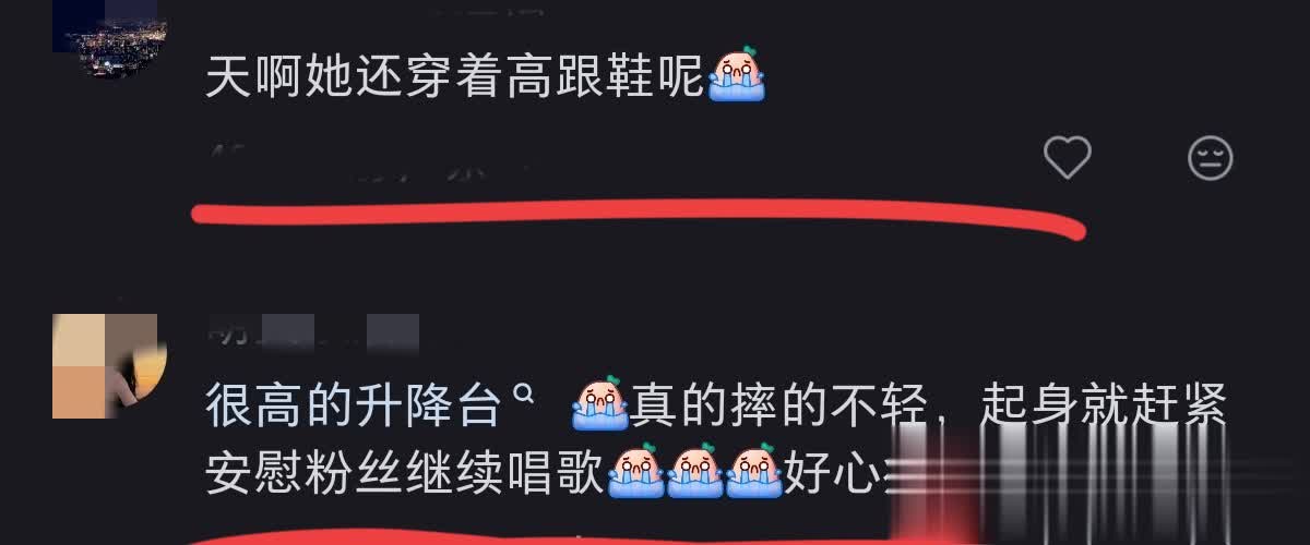 网友们都替张靓颖捏了把汗,从这升降台上摔下去别说高跟鞋了,就是普通鞋都很疼!不少网友都表示,她还安慰粉丝呢,真的很心疼她!希望张靓颖没事!